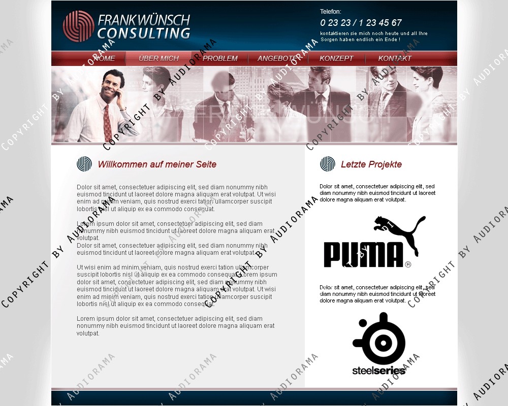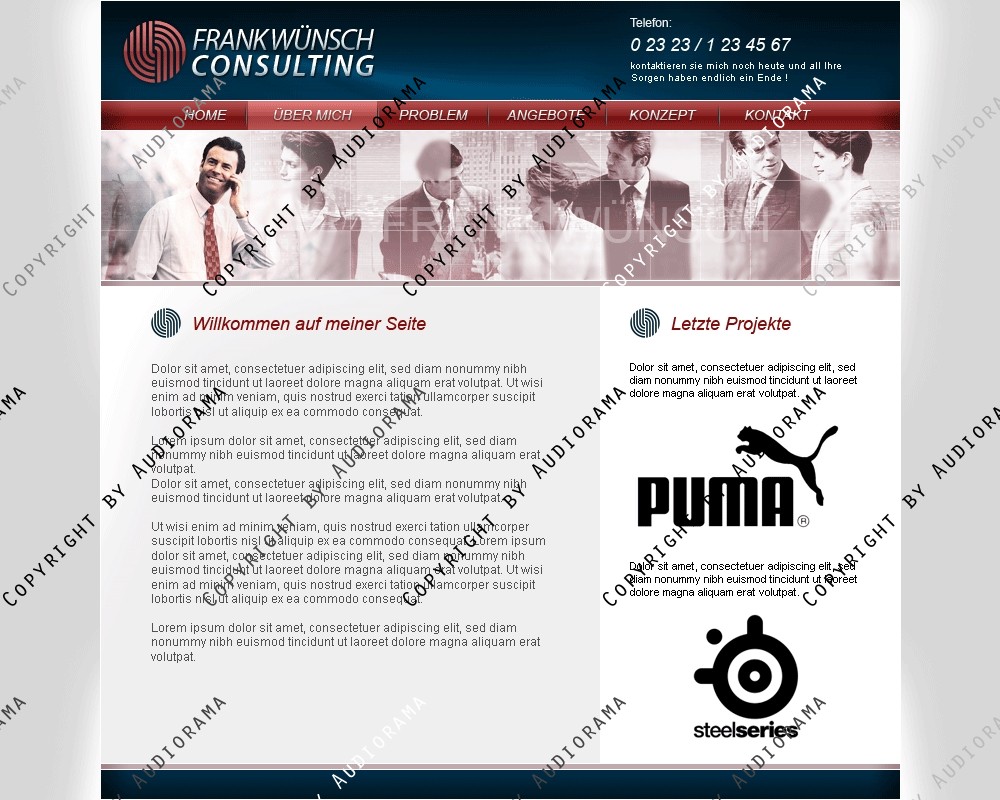 Hinweis: Hierbei handelt es sich nur um das Design, eine Anpassung an ein CMS-System ist nicht im Preis enthalten!