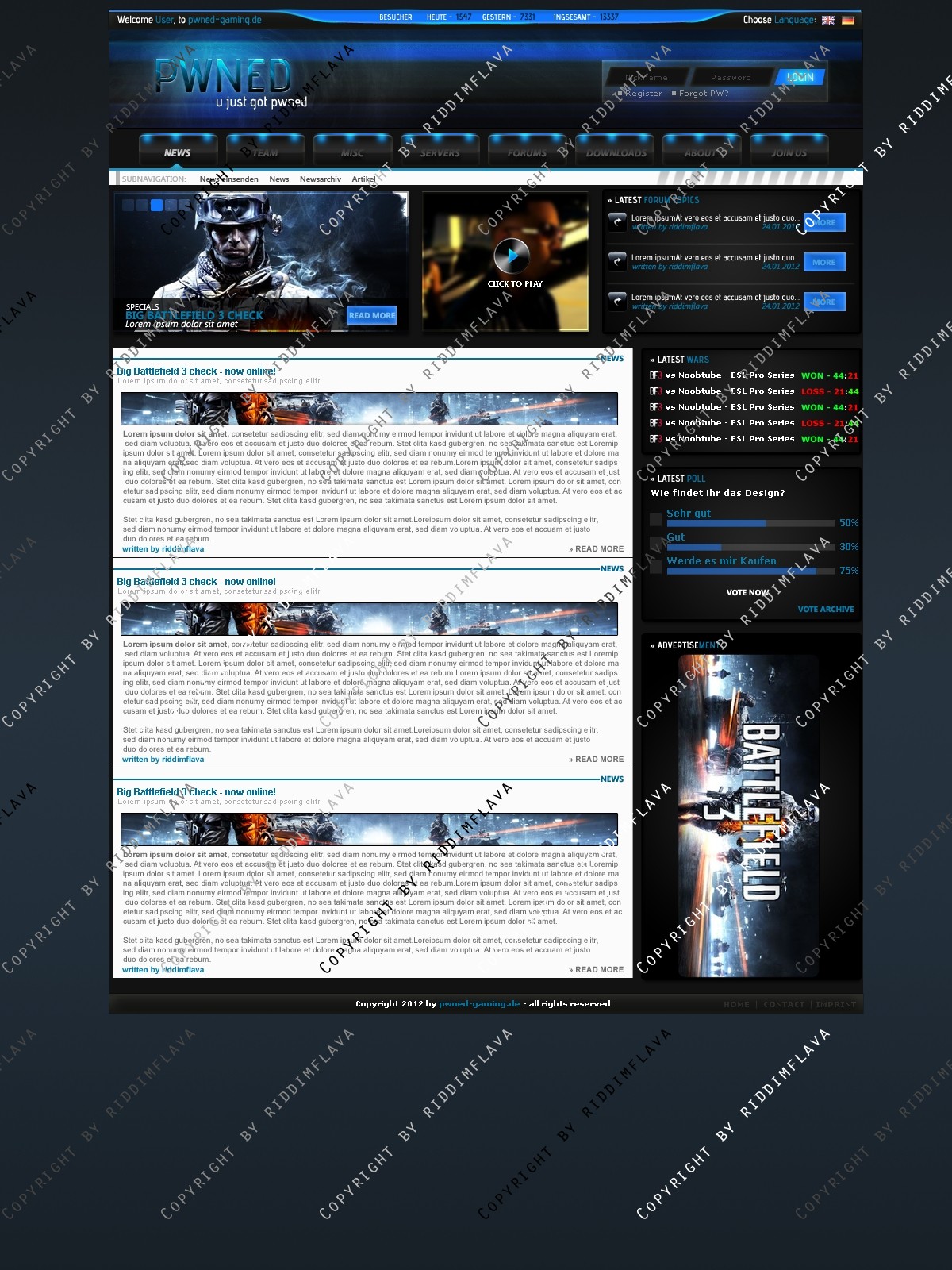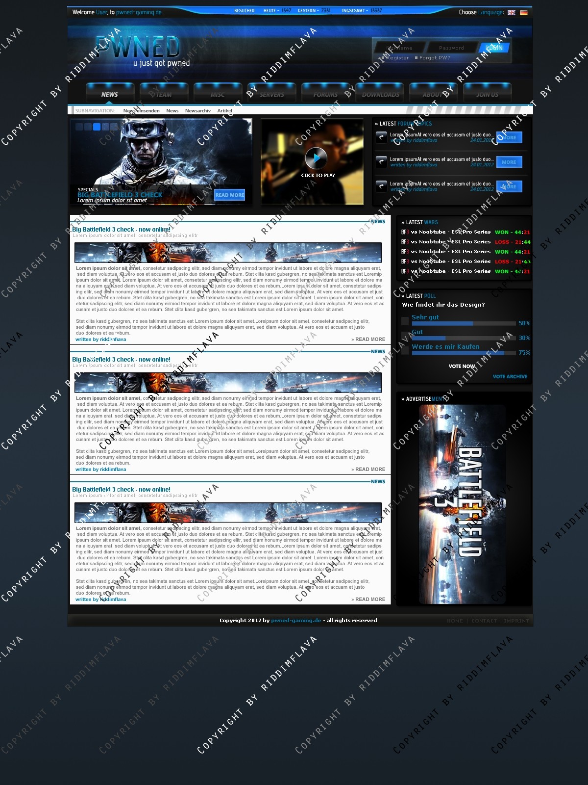 Ein schönes Gaming Layout in den Farben Schwarz/Weiß/Blau.