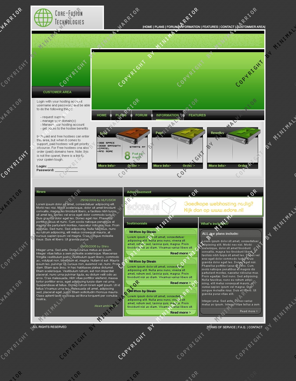 Ich verkaufe folgendes Hosting Layout mehrmals oder exklusiv zu einem für mich angemessenen Preis-/Leistungsverhältnis! Verkauft werden lediglich die .psd-Dateien des jeweiligen Templates, das bedeutet also, dass kein Code bzw. Slicing im Preis inbegriffen ist.