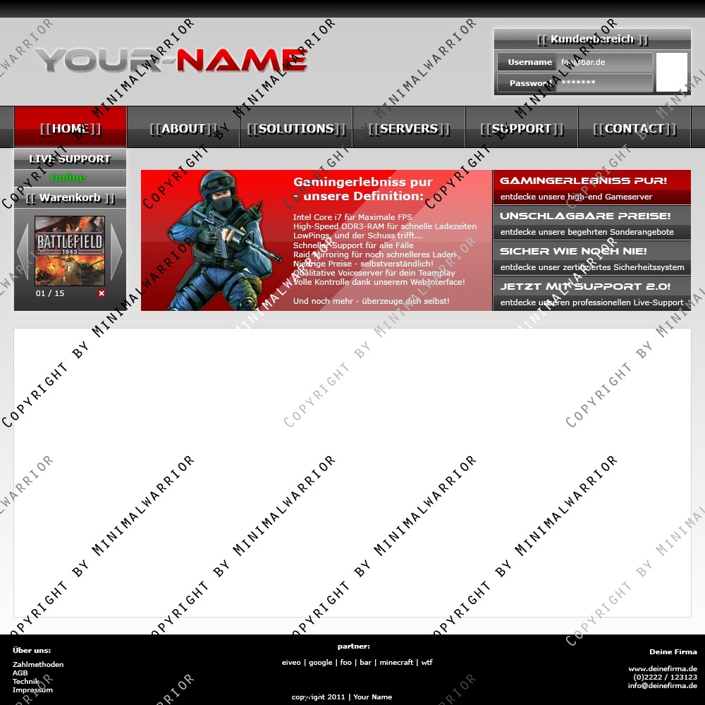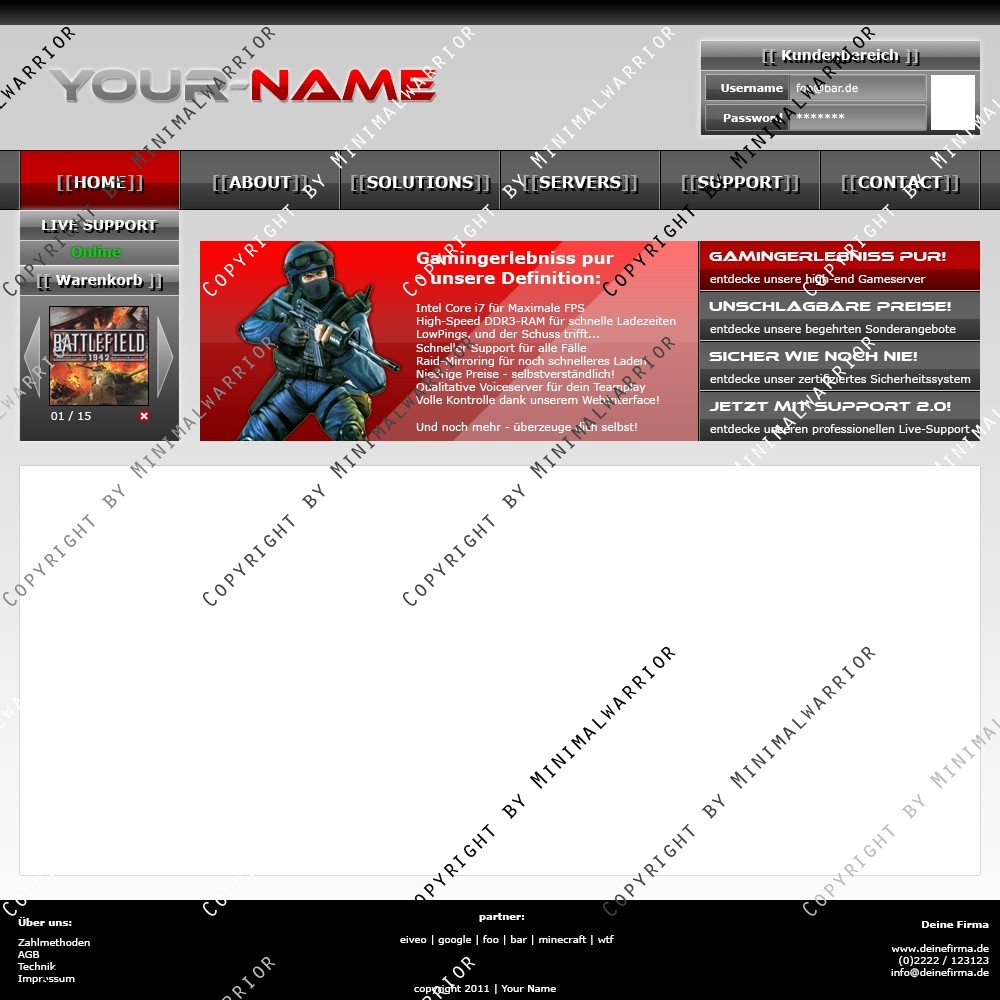 Sei der Erste und kaufe dir das Template Exklusiv um sicher zu gehen, das einzig und allein dein Hosting dieses Top-Design benutzt. Denn anhand des Designs kann man schon die Qualität des Hostings erkennen.