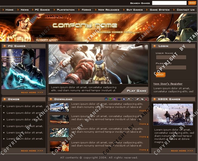 Dieses Design ist optimal für Gamercommunitys oder Clans. Das Design ist in braun und kann danke der mitgelieferten PSD und der Schriftarten nach eigenen Wünschen verändert werden.