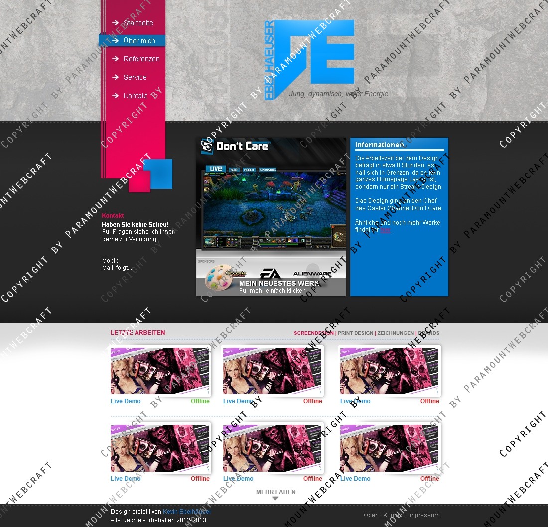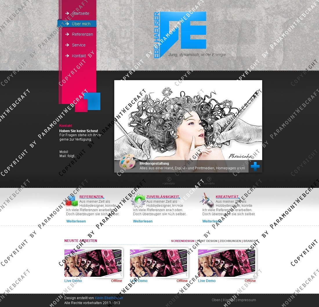 In diesem Packet erhalten Sie eine Photoshop Datei (.psd) mit einem Portfolio das vielseitig einsetzbar ist. Gedacht ist es für Mediengestalter aller Art die ein Portfolio zum Einstieg brauchen. Das Portfolio enthält auch Unterseiten wie z.B. Über Mich und Referenzen.
