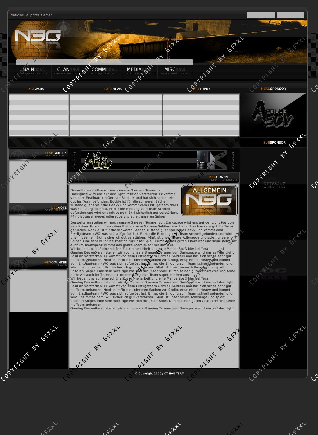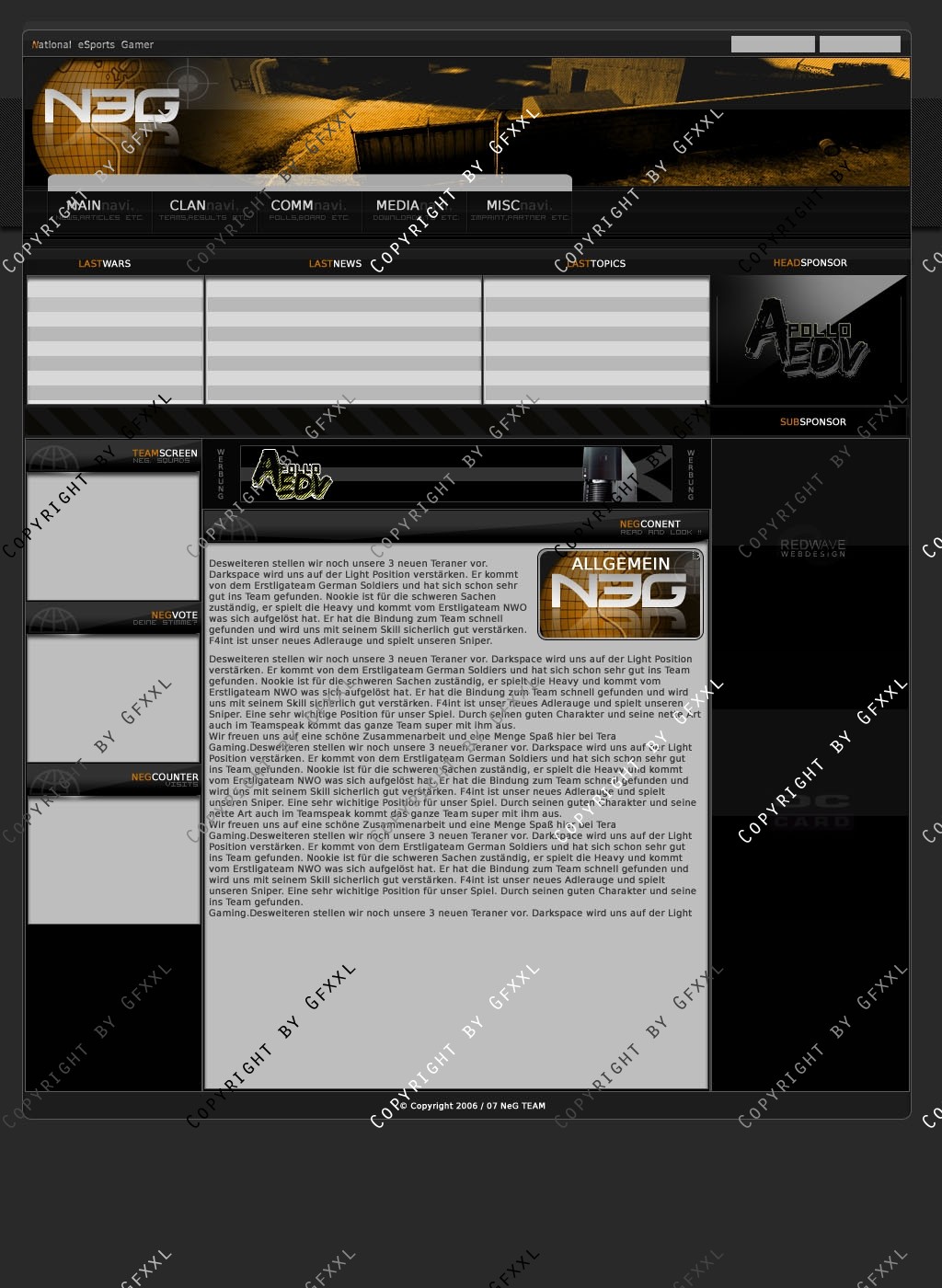 Ich stelle hiermit mein "altes" Clandesign zum Verkauf ein, er war ursprünglich für Natinal-eSports Gamer gedacht, aber aus dem Auftrag is nix geworden... deshalb hier und jetzt zuhaben!