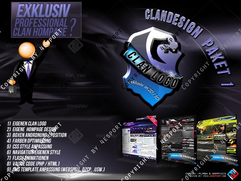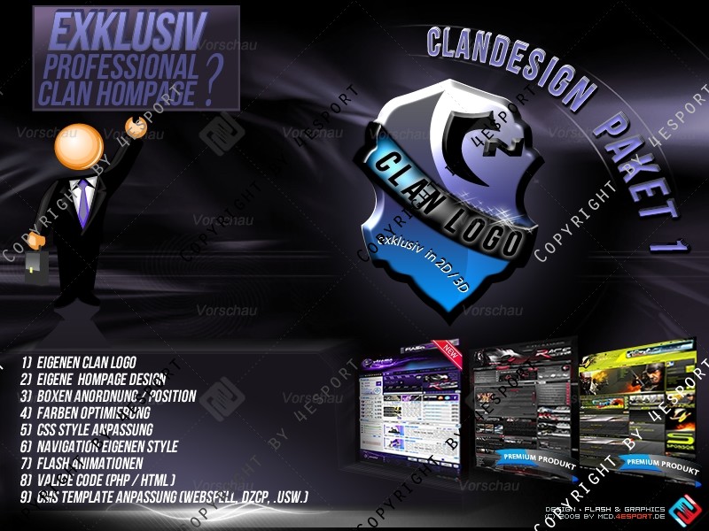1) Eigene Clan Logo (in Wappen- Format oder Style: 2D, 3D, Flash Logo +Aufpreis)