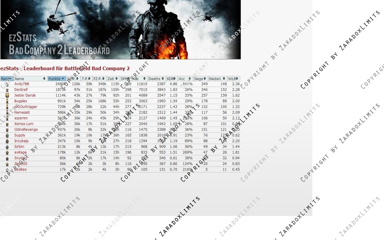ezStats (BFBc 2) - Leaderboard für deine Clanhomepage powered by ezzemm