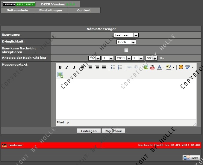 Hier nun mein Ergebnis: das AdminMessenger Addon