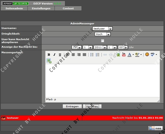 Nachdem mich einer meiner Mitadmins auf die Idee gebracht hat, ein Nachrichtensystem zu bauen, was einem Admin gestattet, einen User direkt anzuschreiben und eine Nachricht für längere Zeit bei ihm als Info anzeigen zu lassen, habe ich mich drangesetzt und ein neues Addon gecodet.