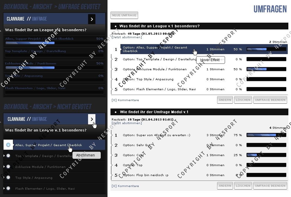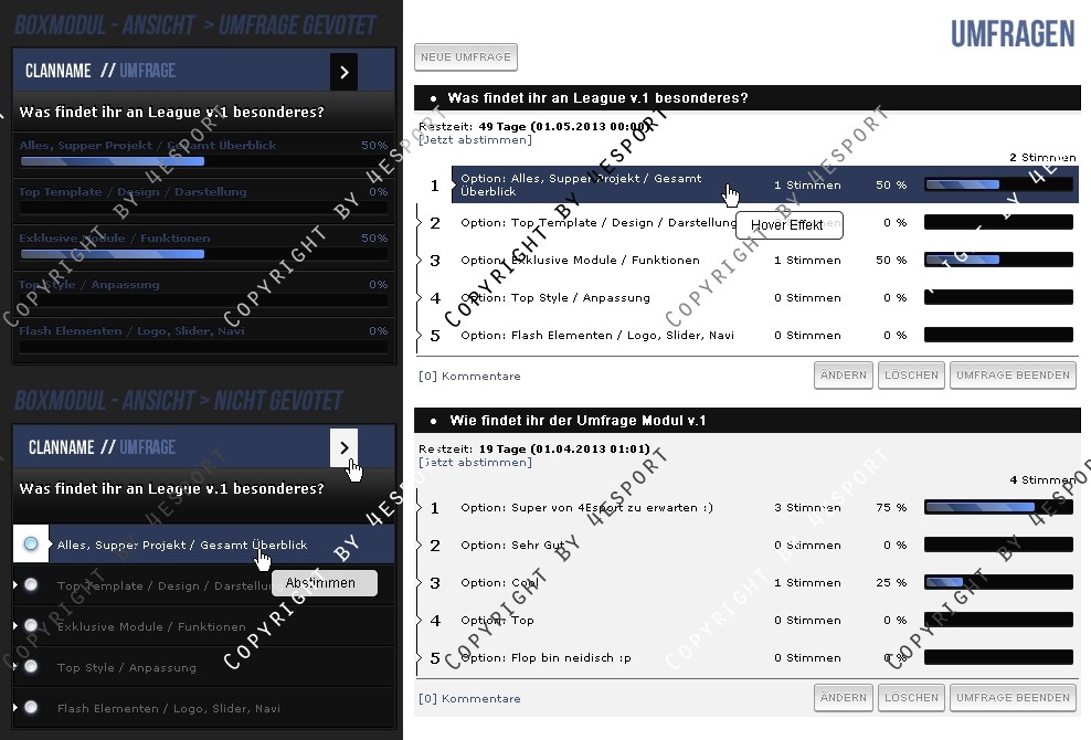 Hier erhalten Sie für ihre Clanhomepage ein Professionelle Poll/Umfrage Modul Erweiterung.