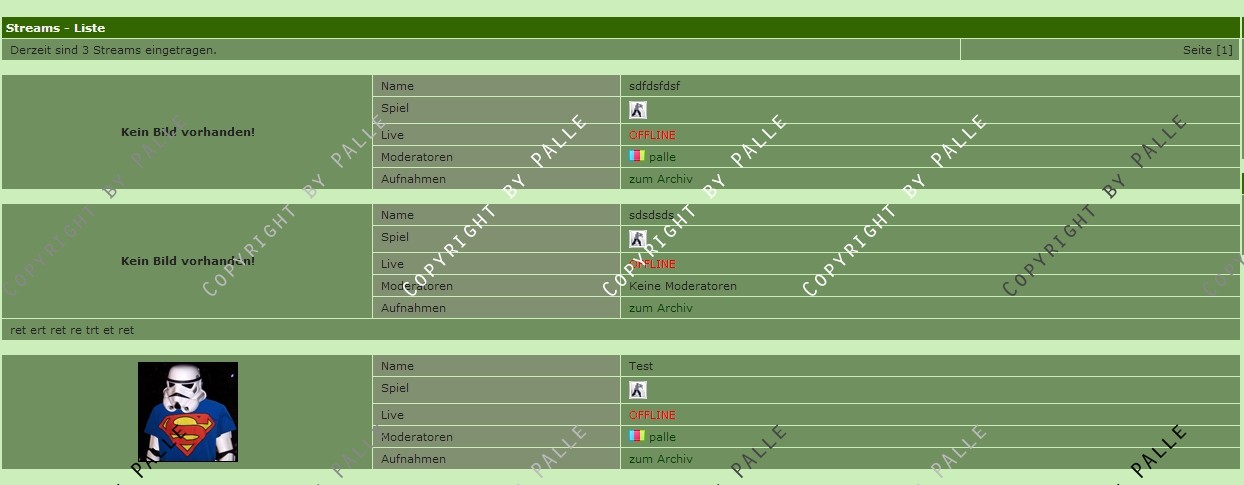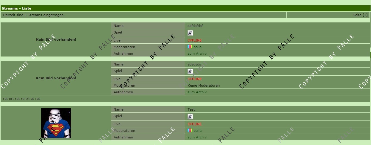 Diese werden aufgelistet, sofern ein Stream Online ist, wird dieser Automatisch auf eine weitere Unterseite verlinkt wo man diesen Stream anschauen kann und dabei ggf. etwas Chatten kann.