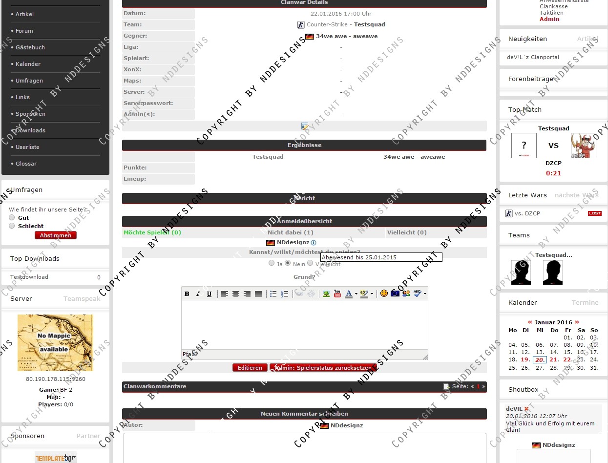 Du hast noch keinen Account auf ClanDesigns.de? Dann kannst du dich hier kostenlos registrieren!