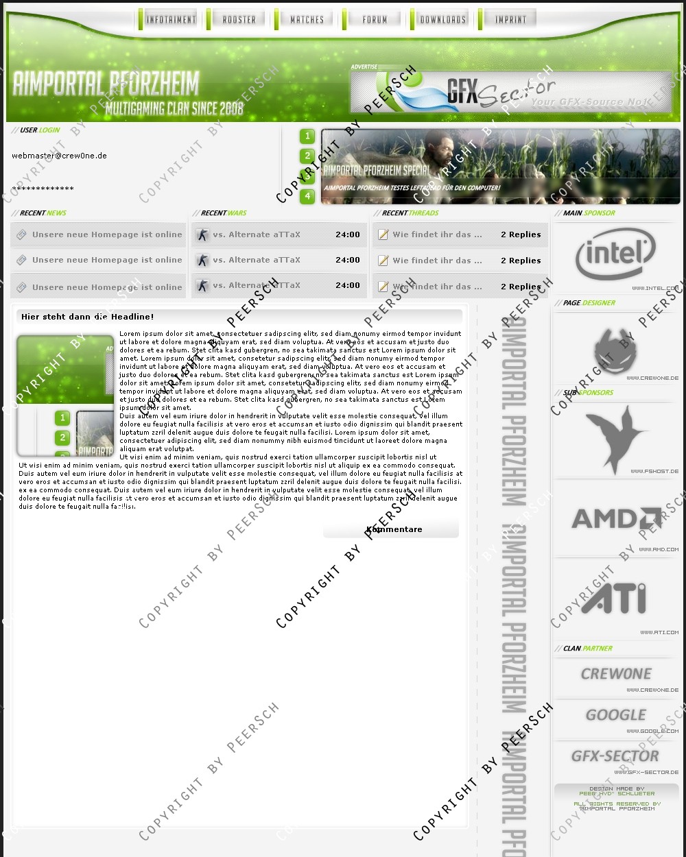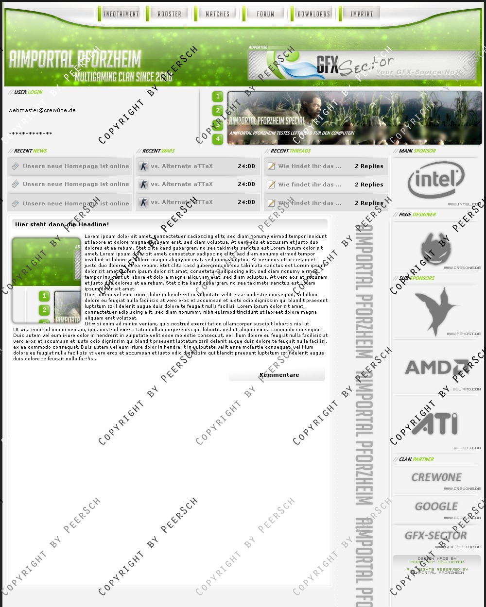 Dieses Template ist angepasst auf eine etwas ältere Version des webSPELL CMS. Bei Fragen oder ähnlichem melden Sie sich doch bitte per Email bei mir; [email protected].