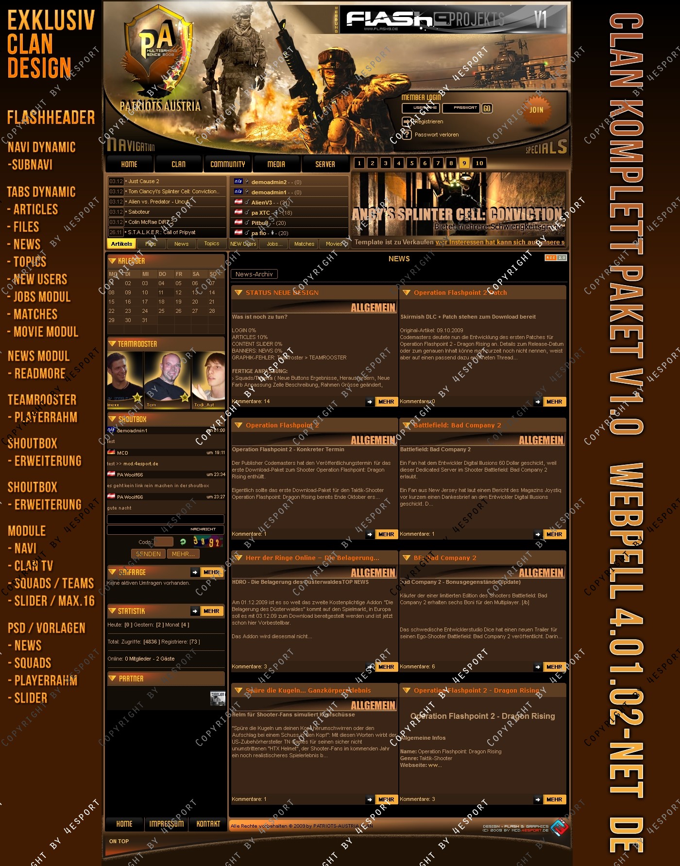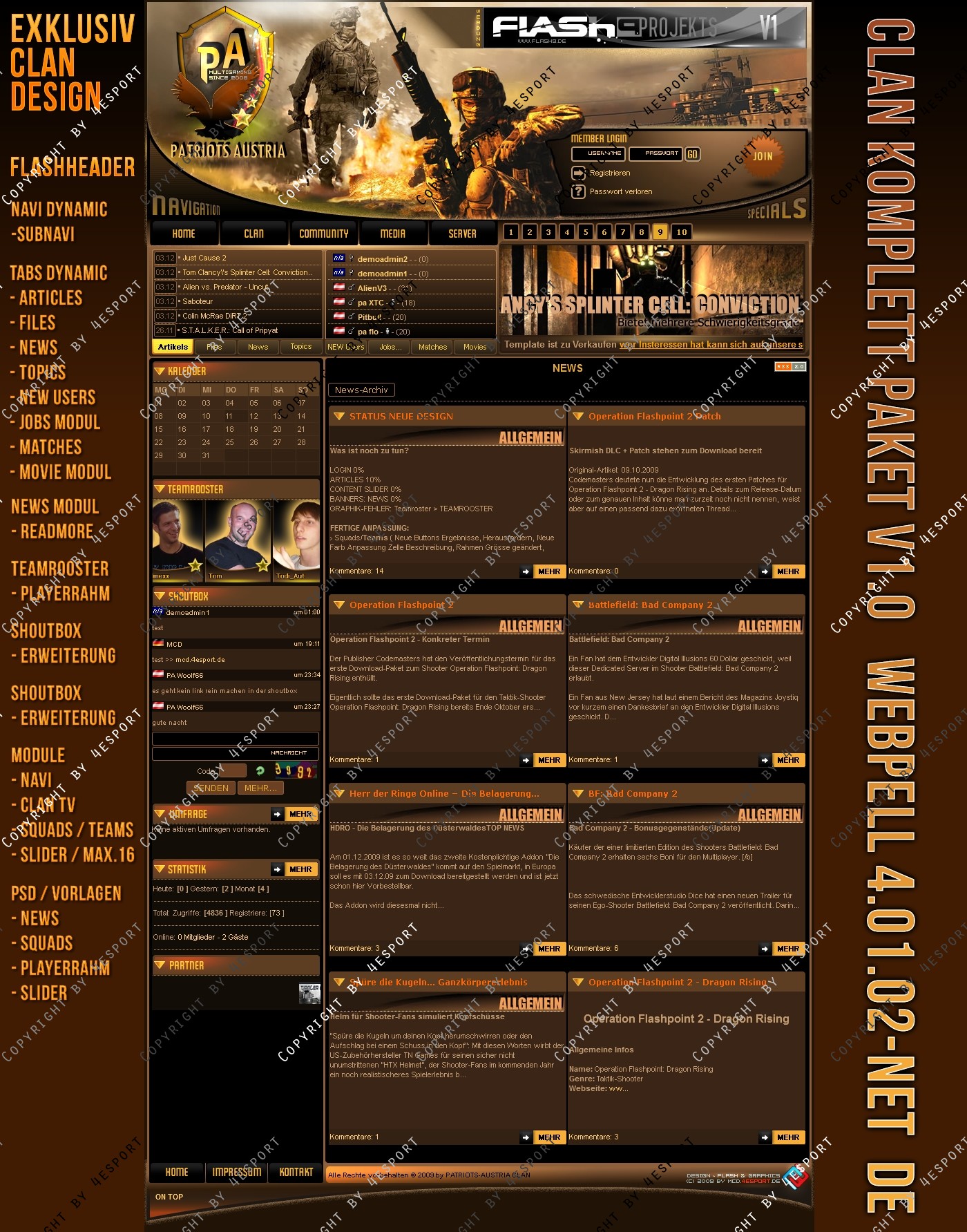 Design PSD Inkl. : News-Vorlage, Squads-Teams-Vorlage, Slider-vorlage, PA-Logo, Header- Links (hinter Logo der graphik)