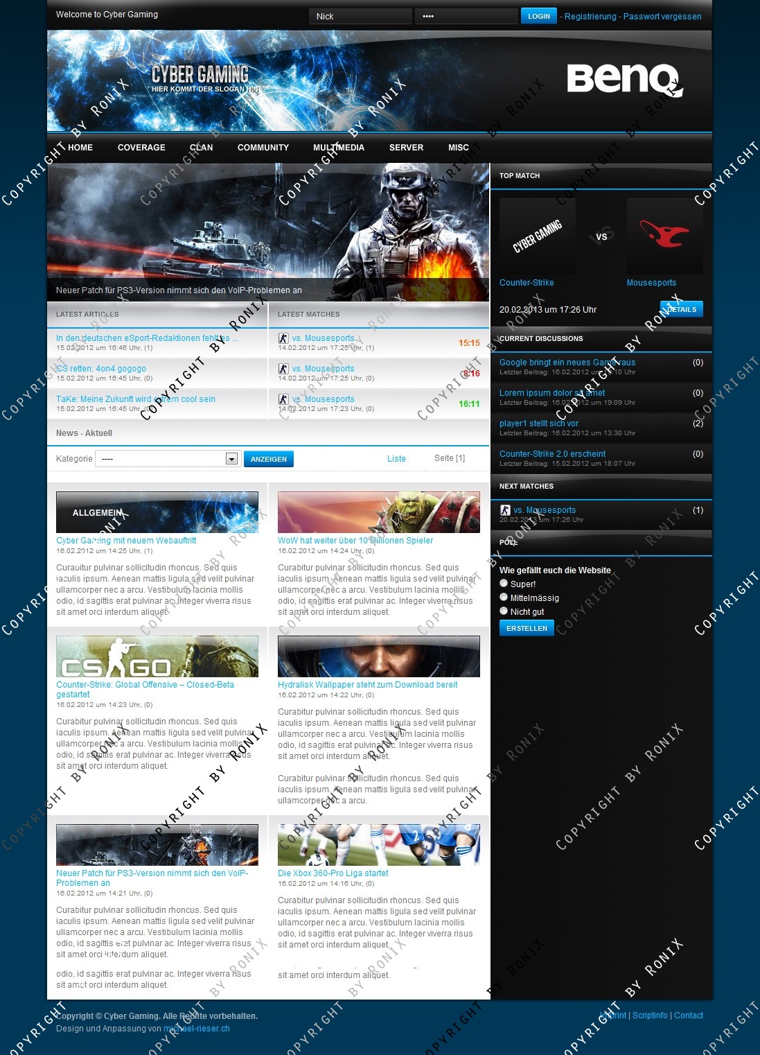 Das Cyber Gaming 01 Template zeichnet sich durch folgende Punkte aus: