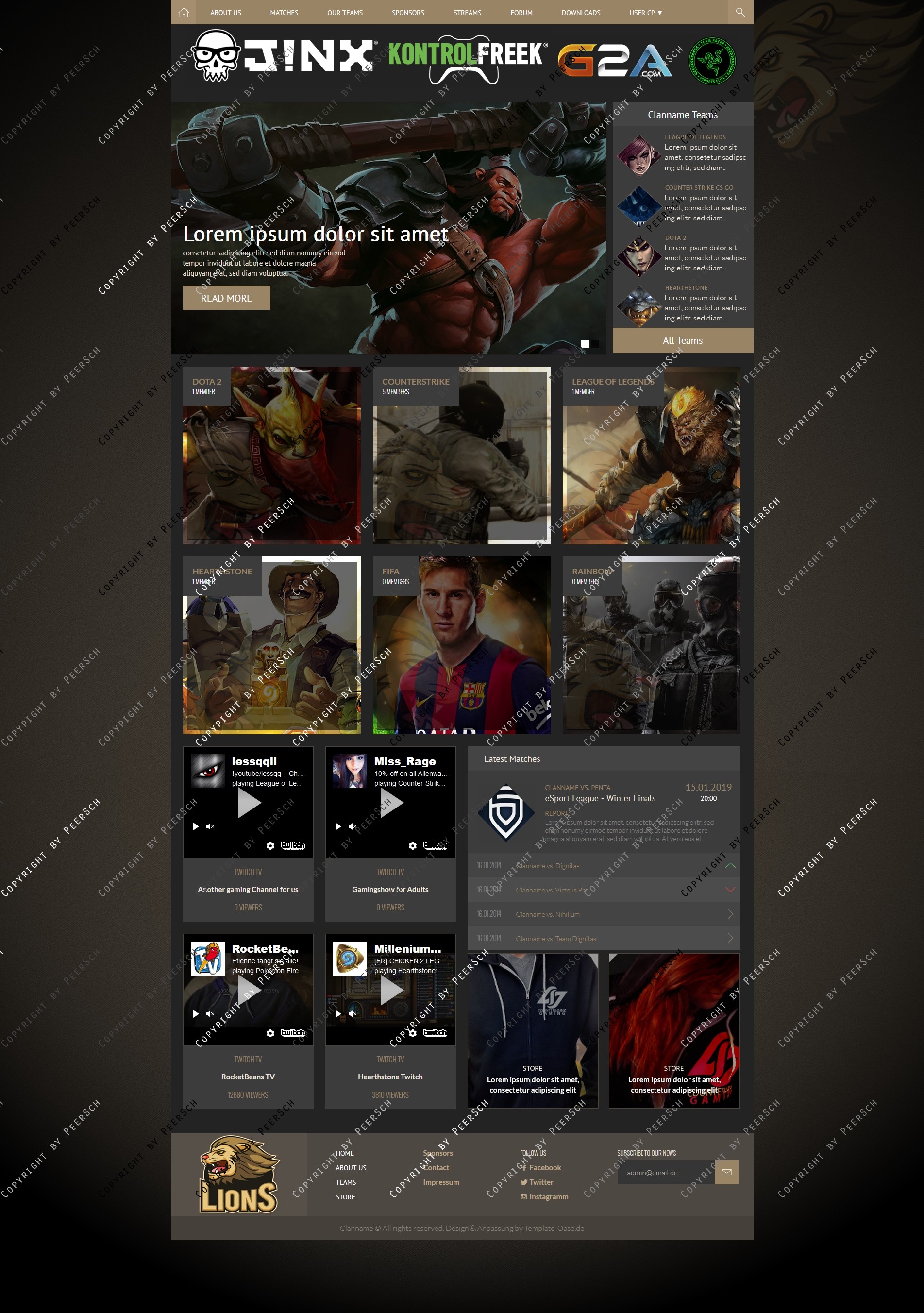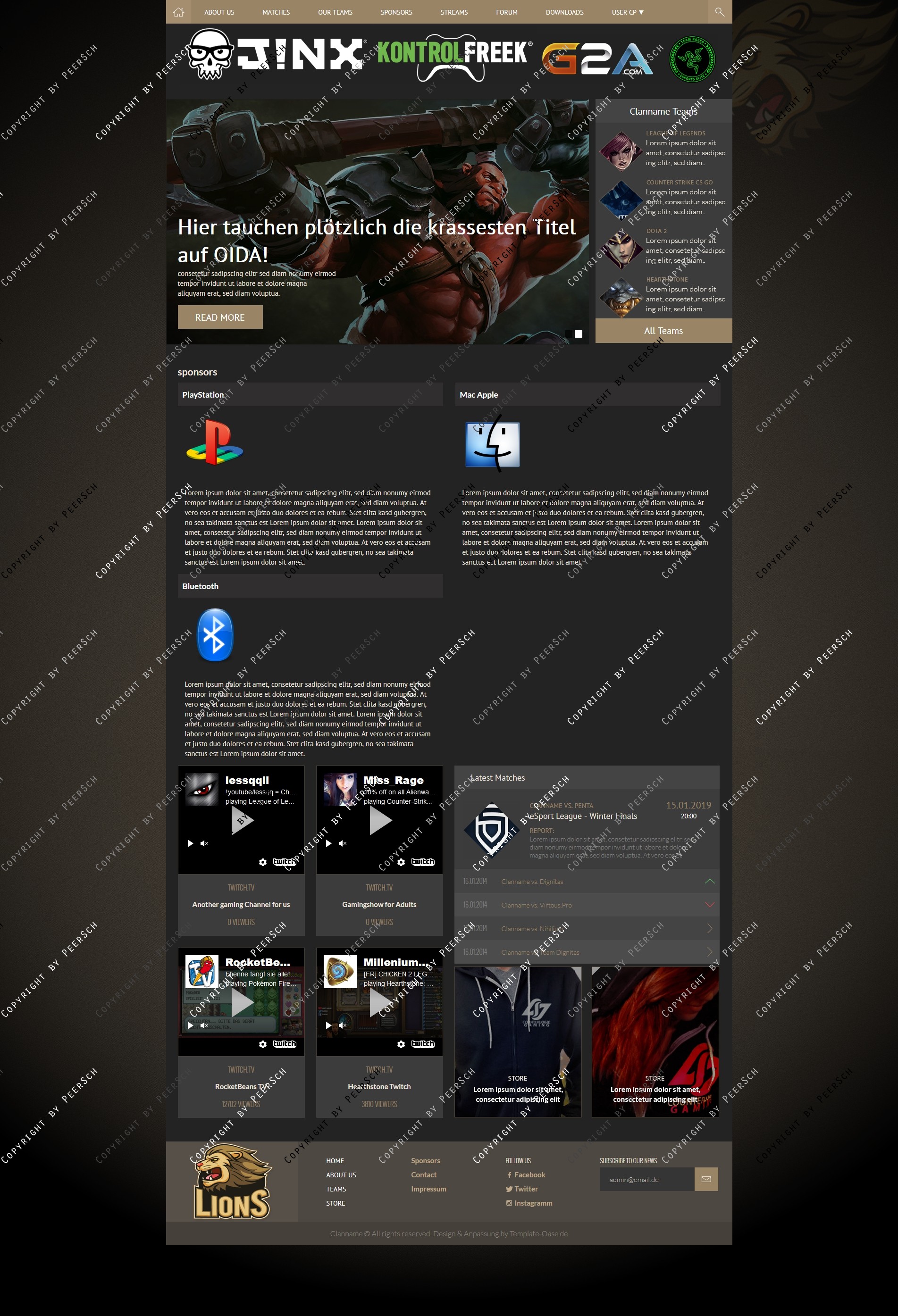 Im Preis mit inbegriffen sind außerdem die angepassten Unterseiten: Sponsoren, Squads, Squaddetail, News, Newscomments, Profil und Streams!