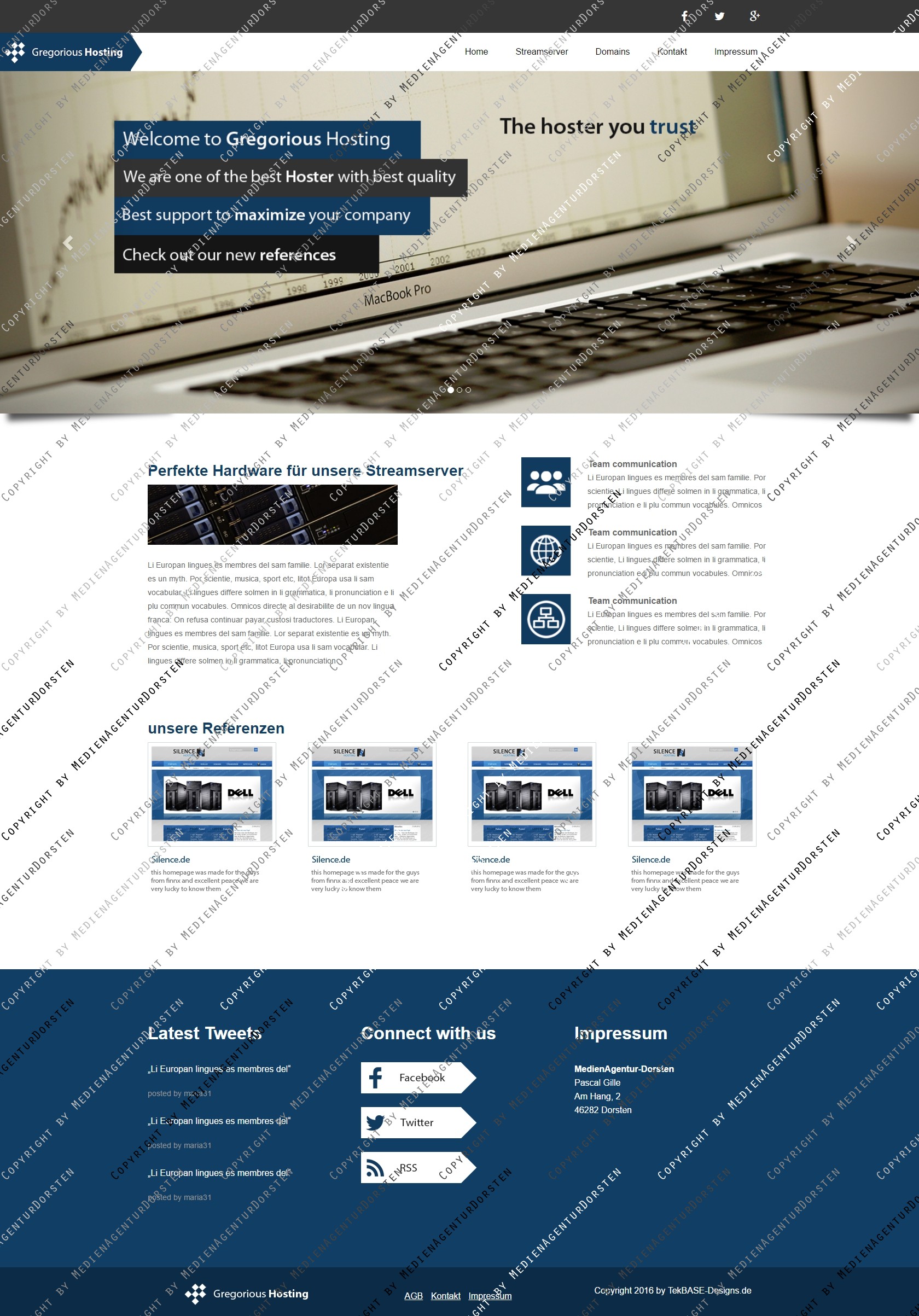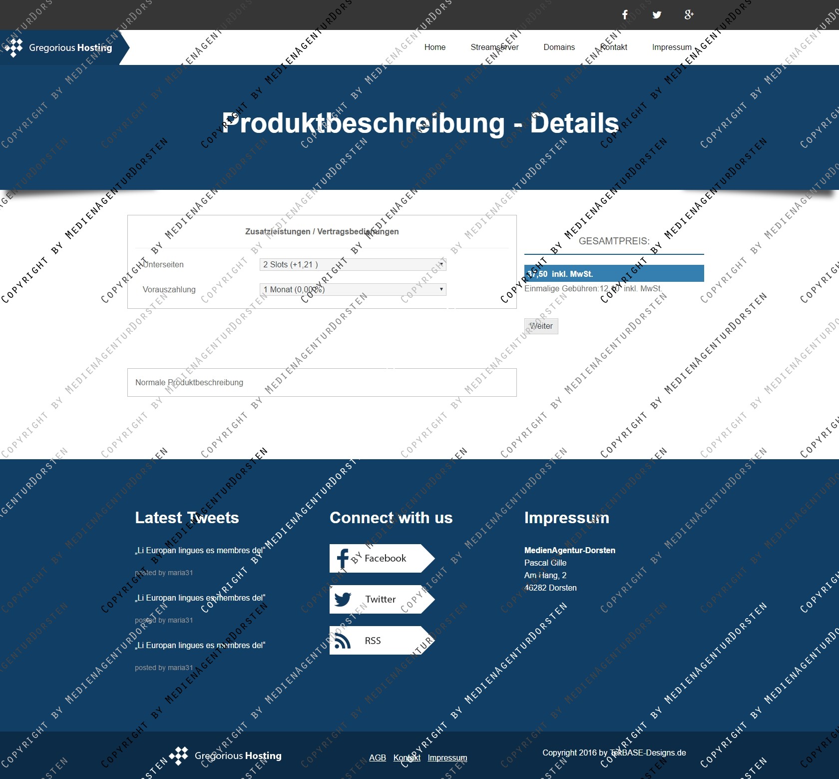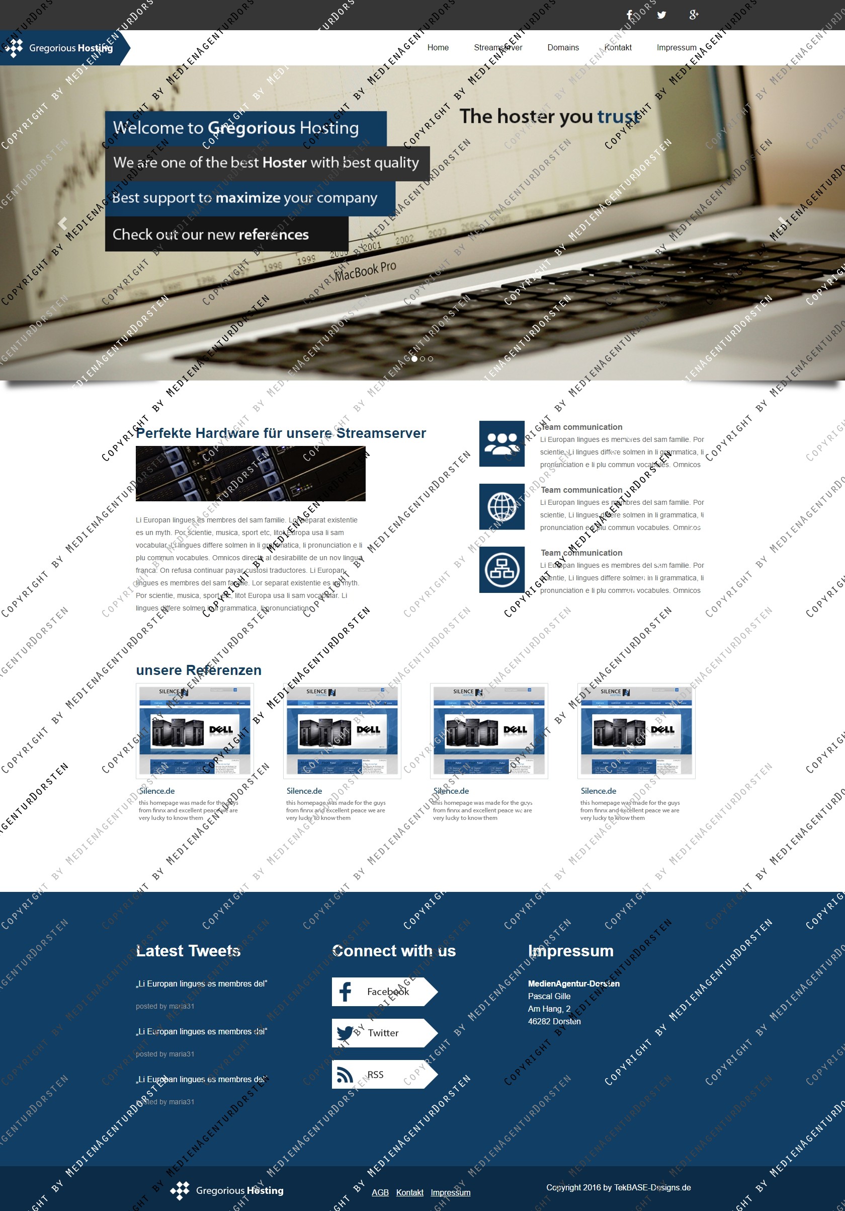 Hierbei handelt es sich um die Version 1.0 von unseren Gregorious Hosting Design. Das Design ist mittels Bootstrap Programmiert und ist Mobilfähig.