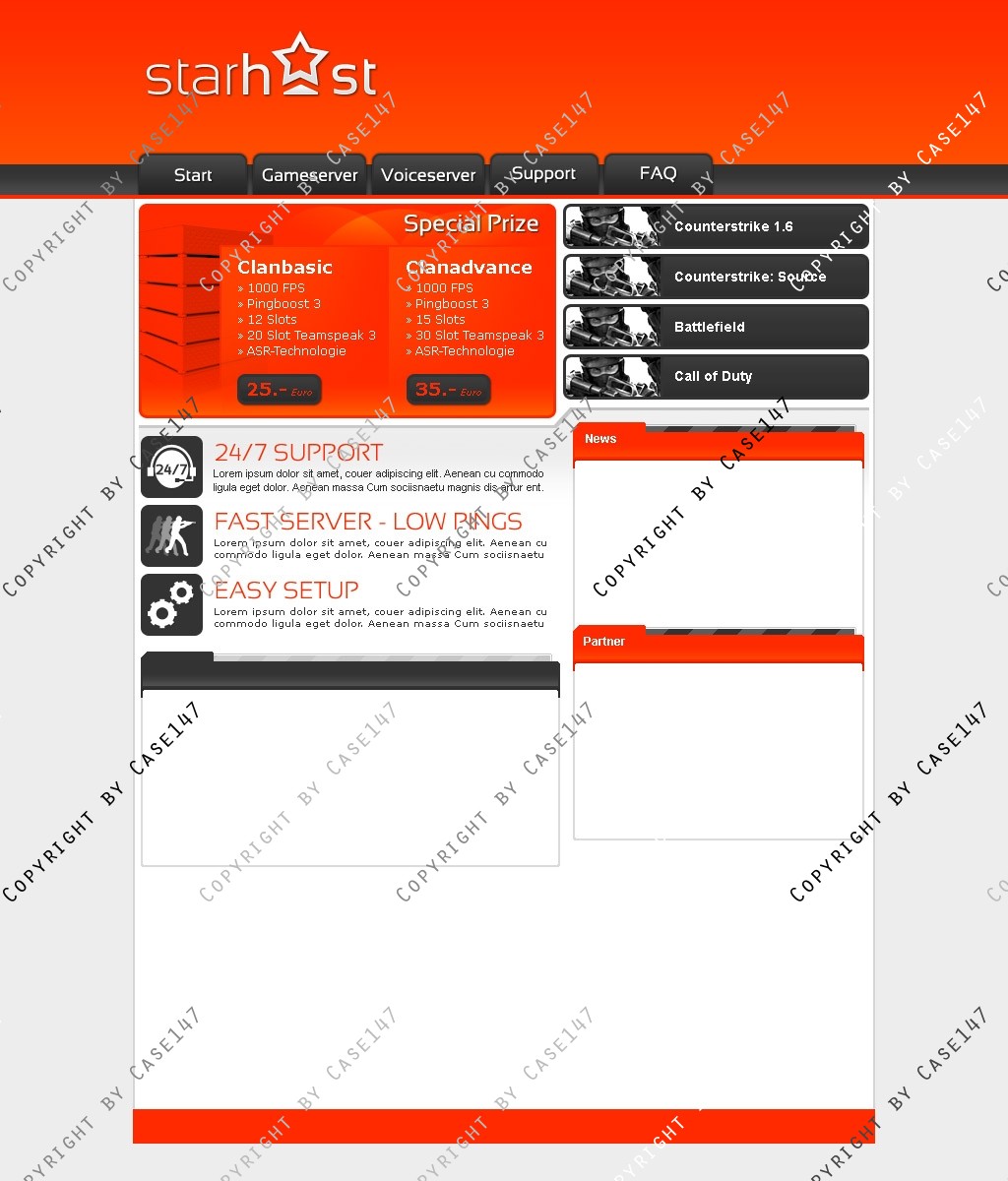 die Hosting-Webseite wurde tabellenlos in HTML/ CSS umgesetzt.